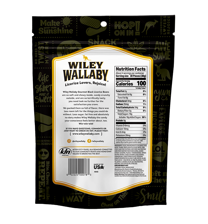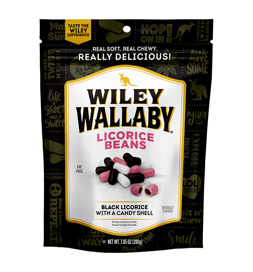 Wiley Wallaby Gourmet Black Licorice Beans are so soft and chewy inside, candy crunchy outside and so bursting with terrific taste, you need look no further for the satisfaction you crave.